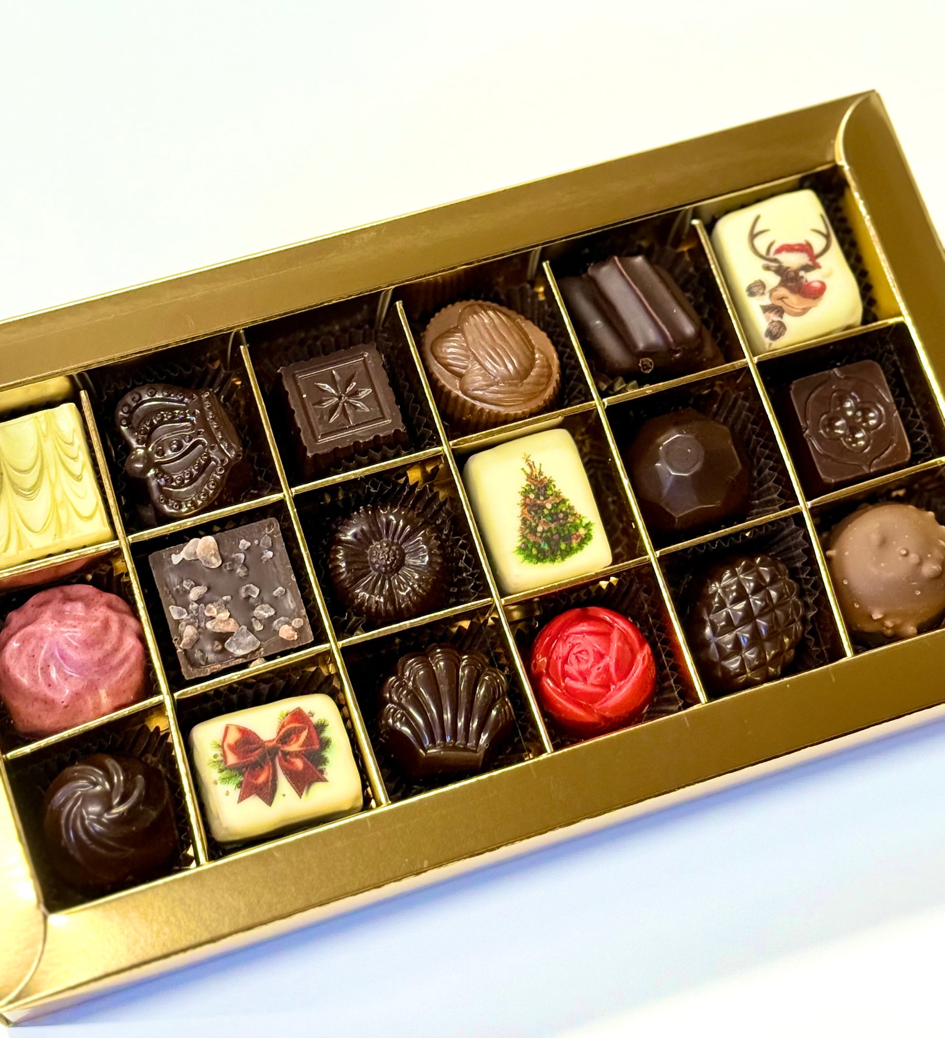 Kalėdiniai rankų darbo saldainiai, auksinė dėžutė 260 gr.