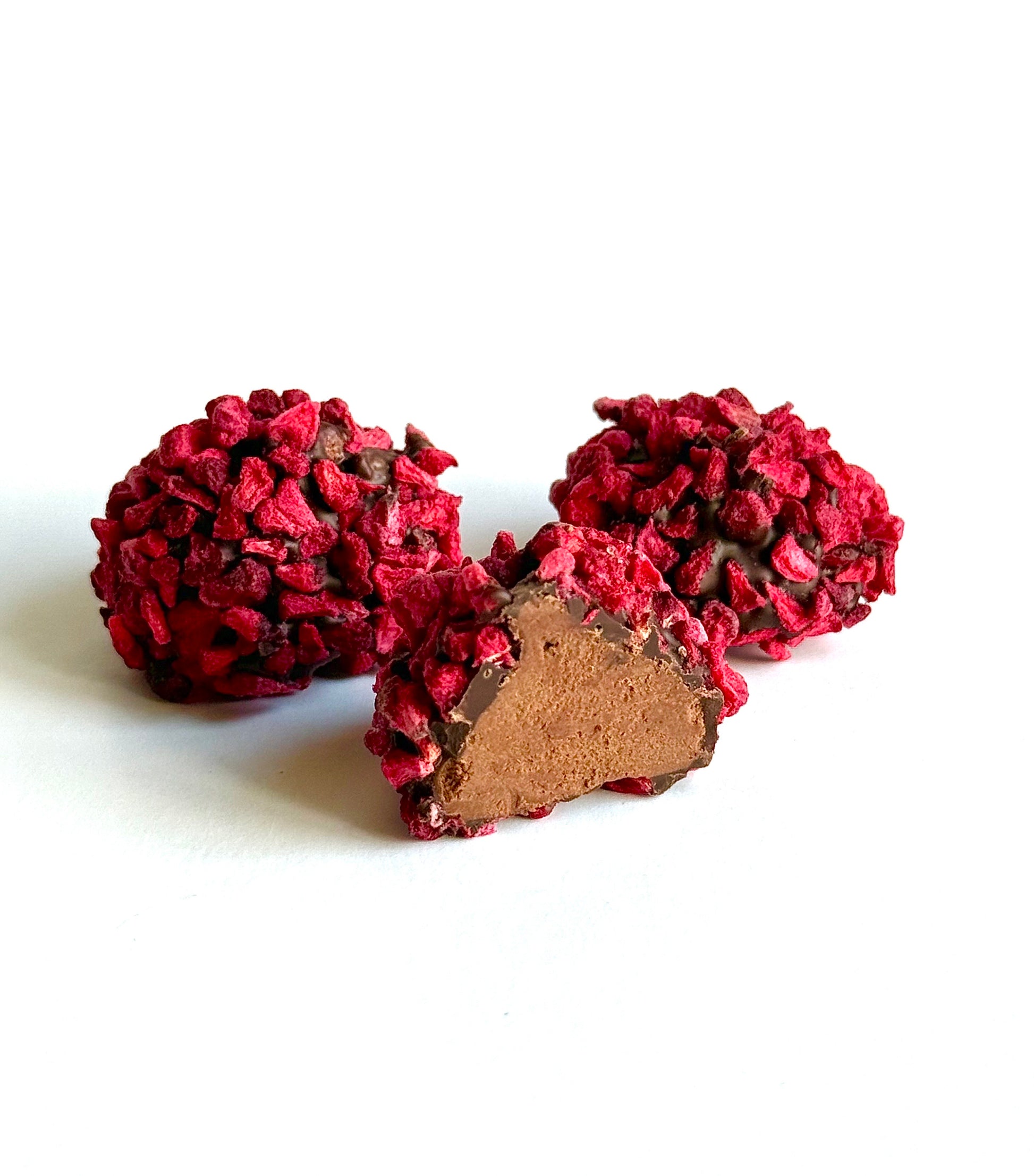 Belgiško šokolado triufelis su liofilizuotomis avietėmis