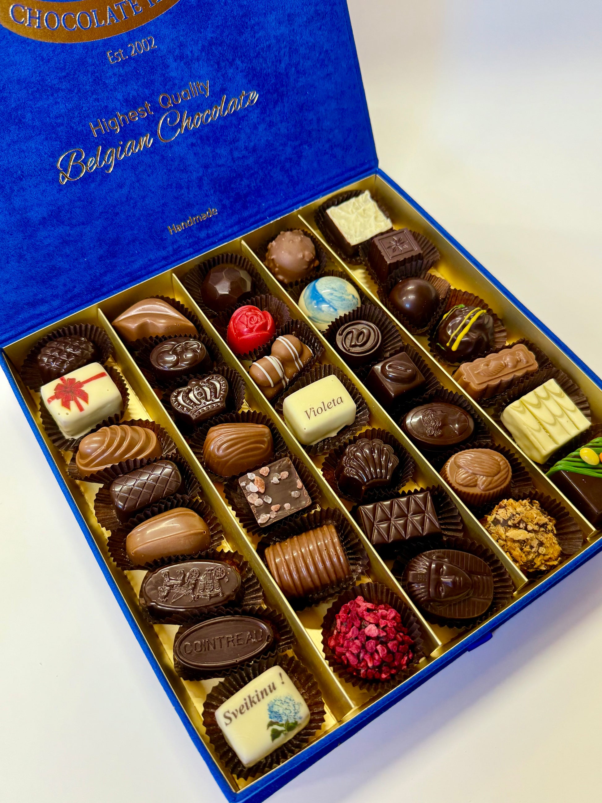 🎨 Kiekvienas saldainis kuriamas individualiai, todėl nėra dviejų vienodų – tik jūsų istorija šokolade.