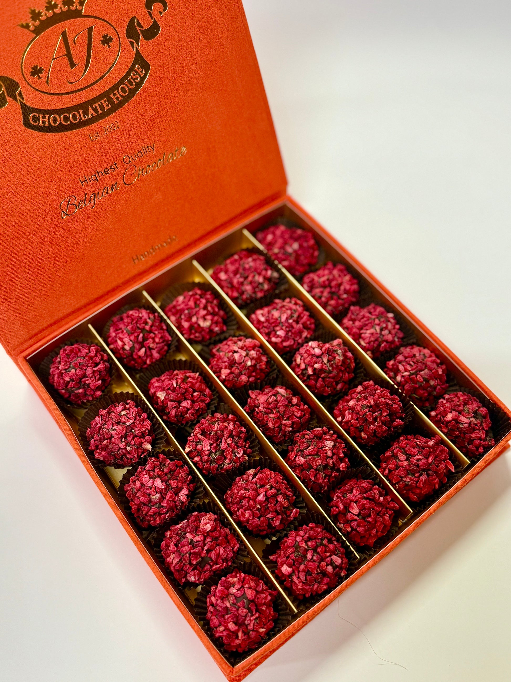 Triufeliai su liofilizuotomis avietėmis prabangioje dėžutėje, 240 gr.