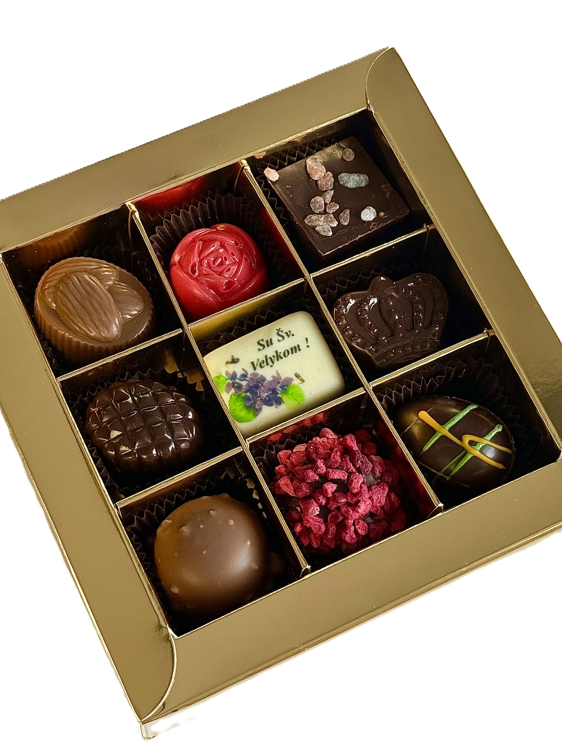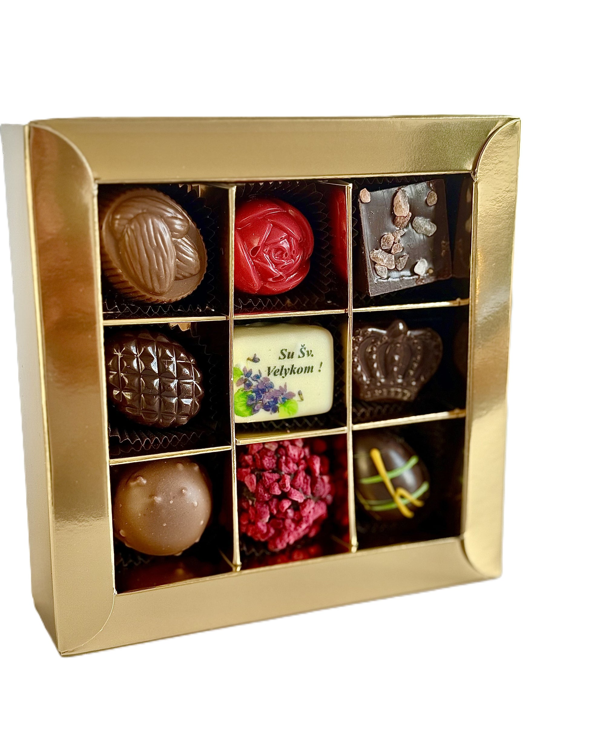 Šis Velykų saldainių rinkinys su elegantiška auksine dėžute sukuria šventinę nuotaiką ir puikiai tinka dovanai ar gardžiam dalinimuisi. Dėžutė skirta visiems, kurie mėgsta skanias akimirkas su šeima ir draugais.